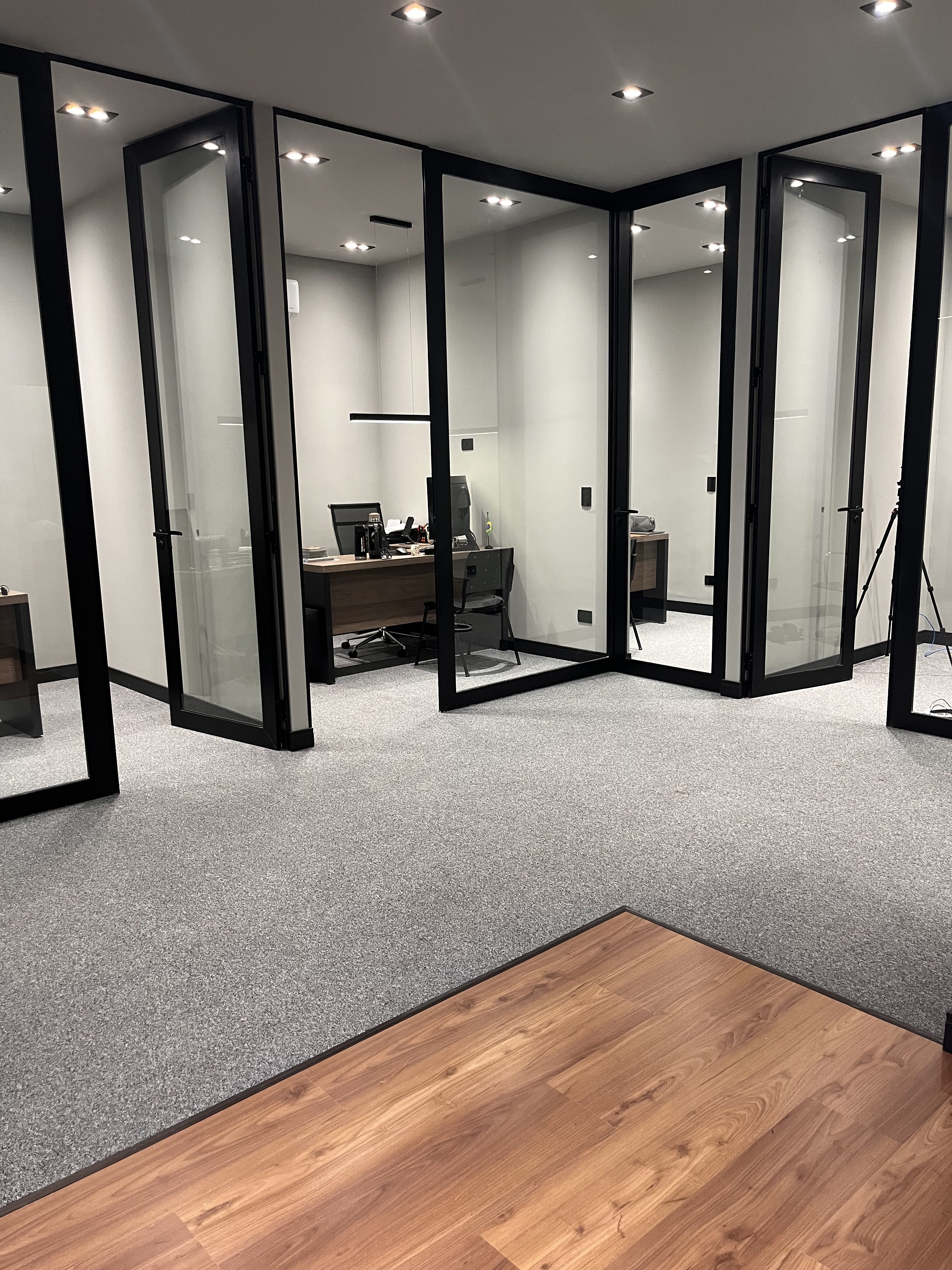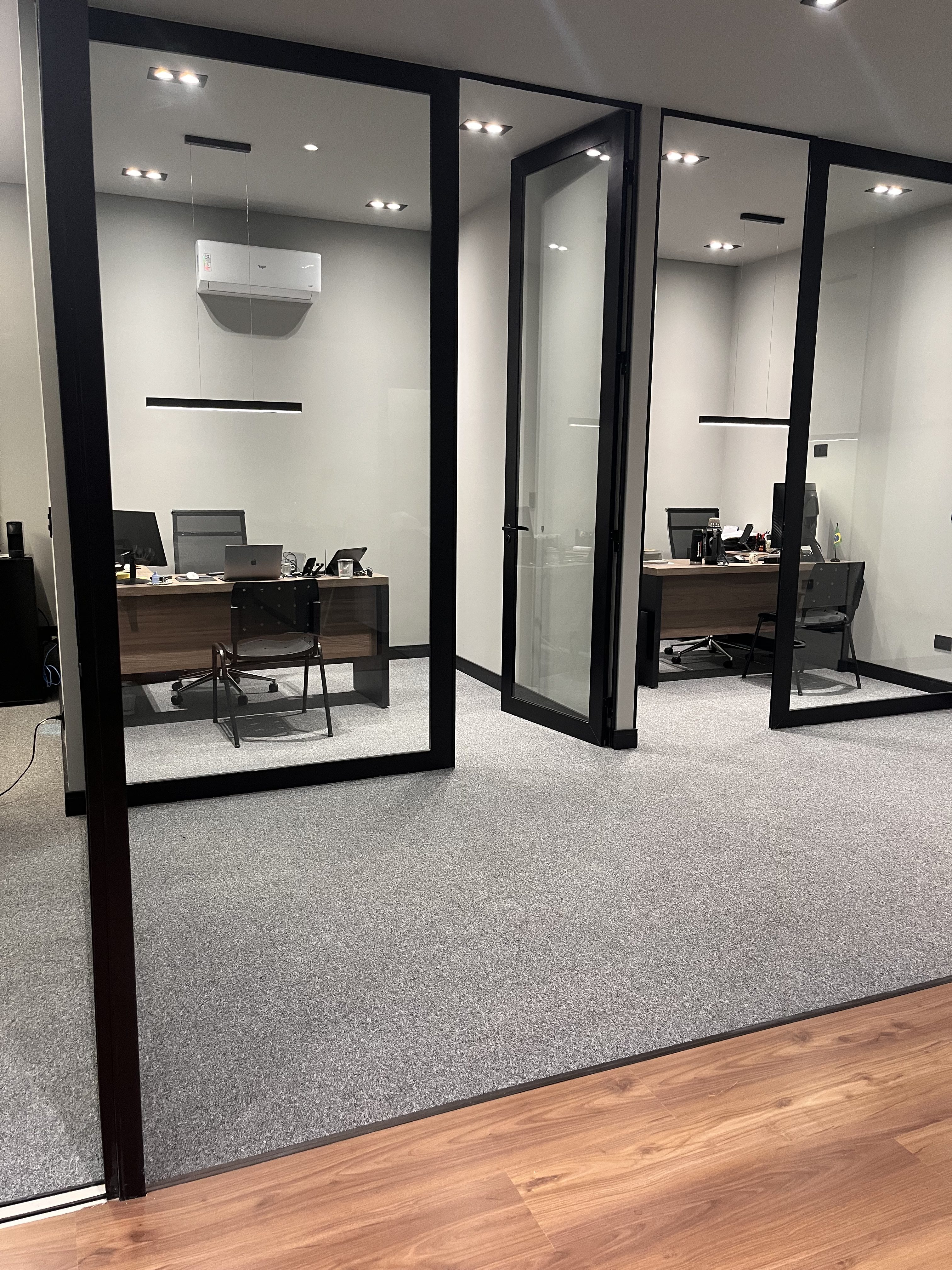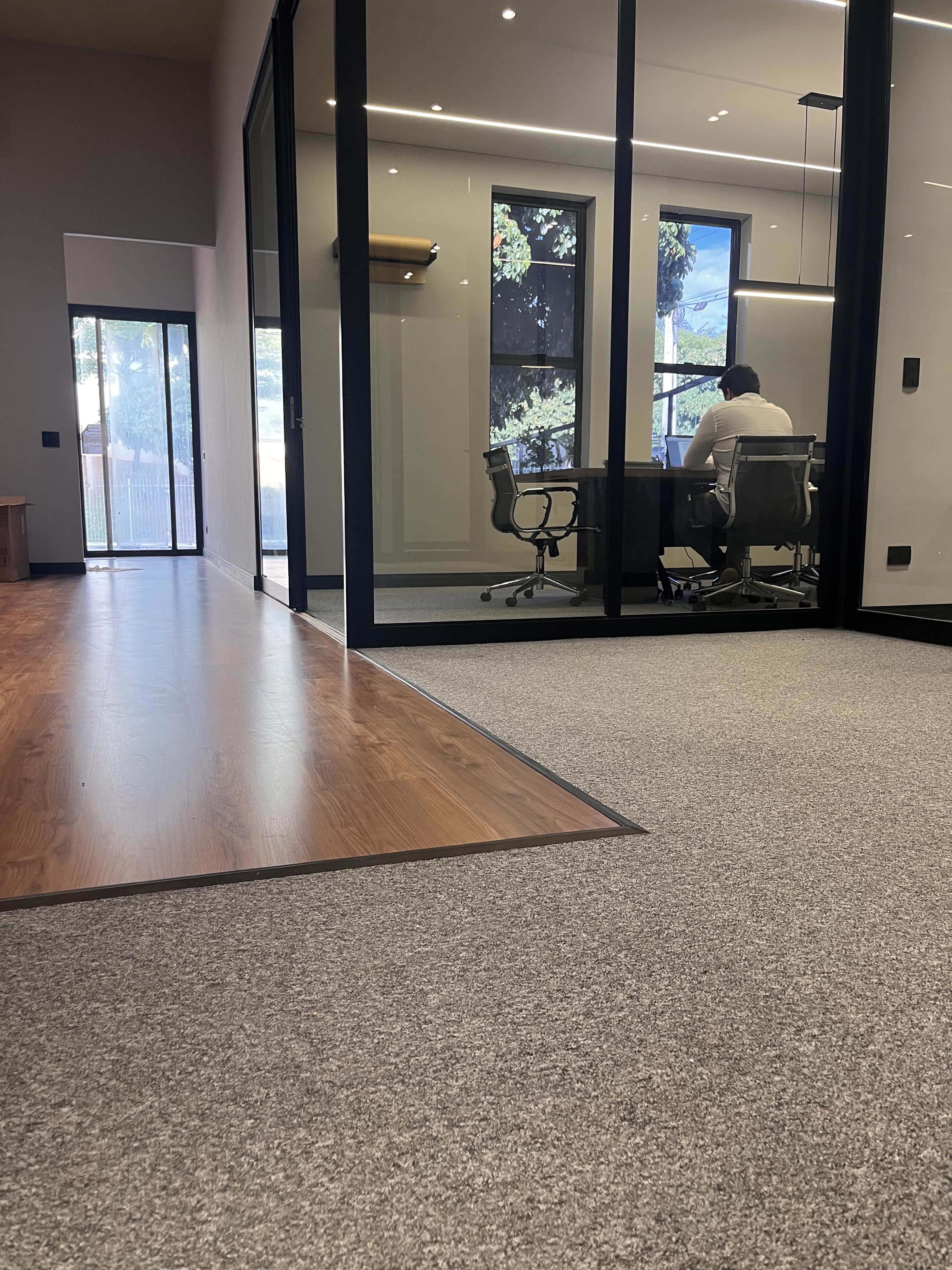 Projeto Imobiliária. Produtos fornecidos: Piso Laminado Quick- Step Premiere Ipê Abano, Carpete São Carlos e Redutor de aluminio Fume. Produtos e Execução: @atelierobertocervellini